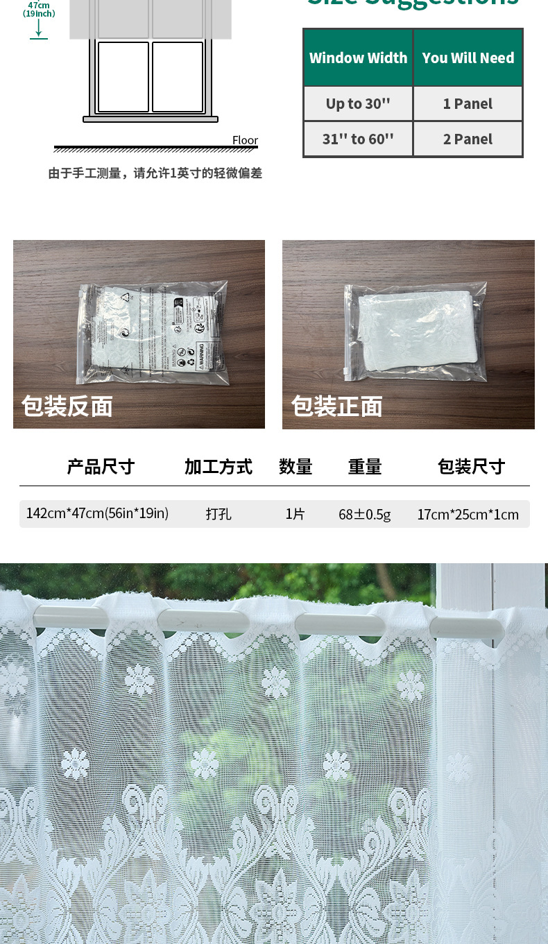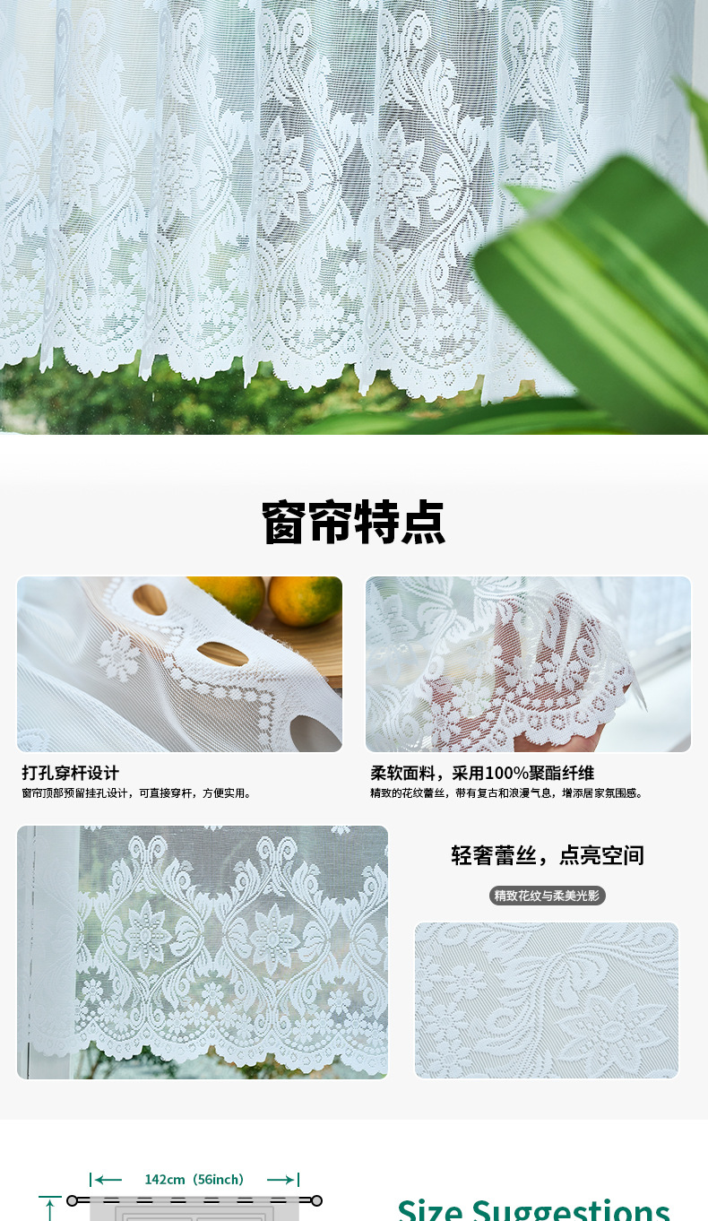 Material: 100% Premium Polyester (Durable Lace Knitting).