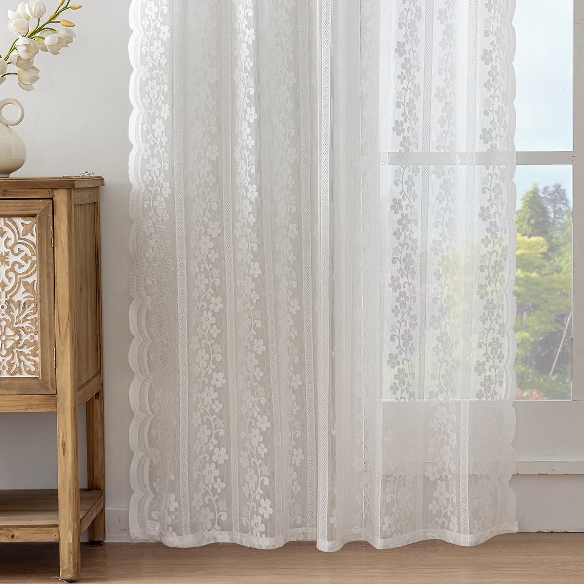 Privacy with a View: The textured lace pattern provides a layer of daytime privacy, blurring the view from the outside while still allowing you to enjoy the scenery.