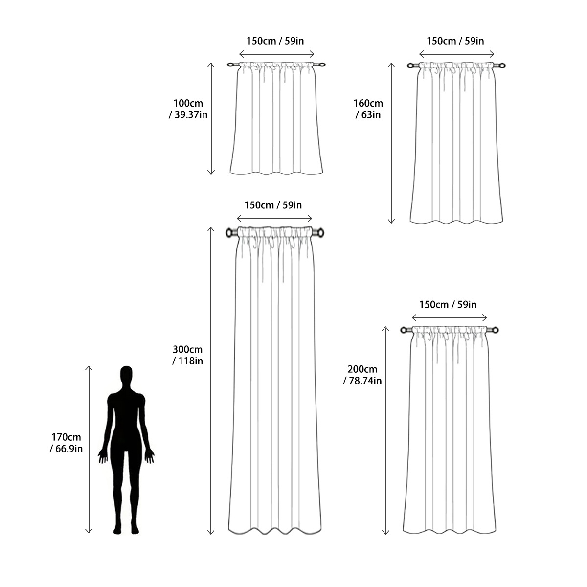 Note: Curtain rods or tracks are not included.