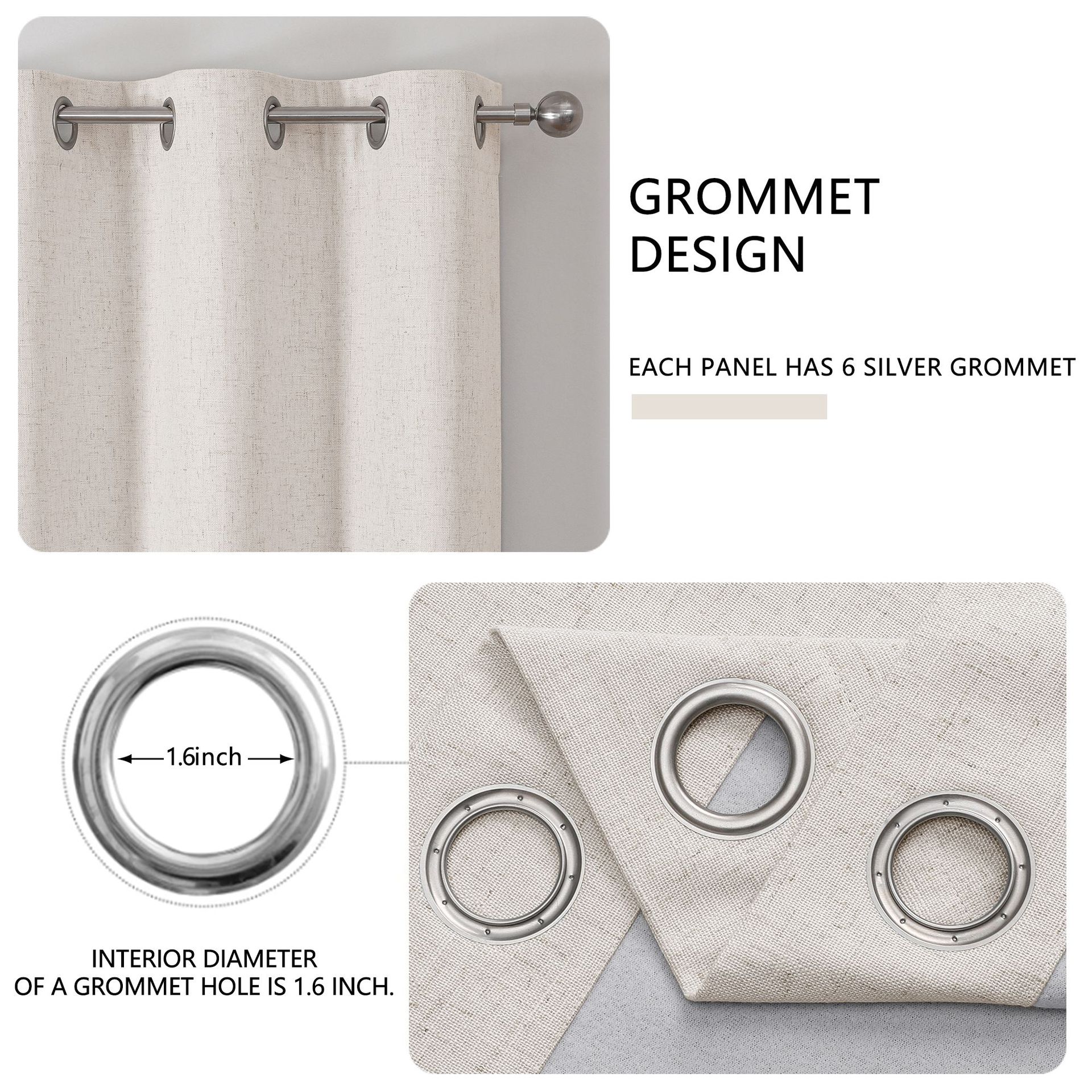 Header Type: Grommet Top (Fits standard rods up to 1.6 inches diameter).