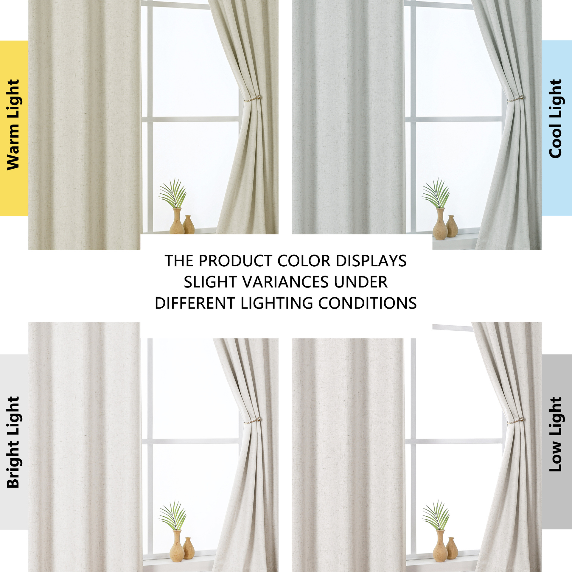 Backing: Some 100% blackout curtains may have a specific backing color (usually white or grey) to reflect heat; please refer to product images.